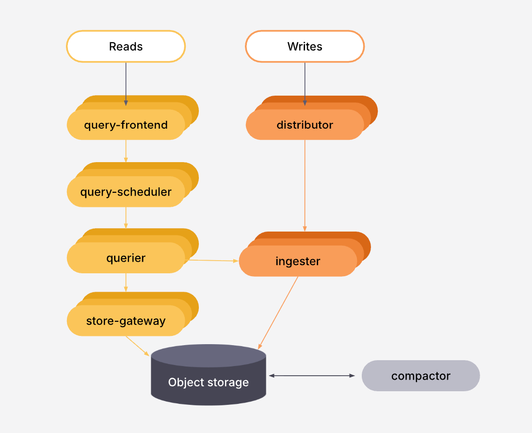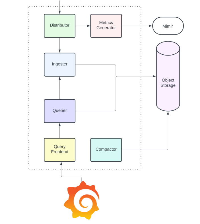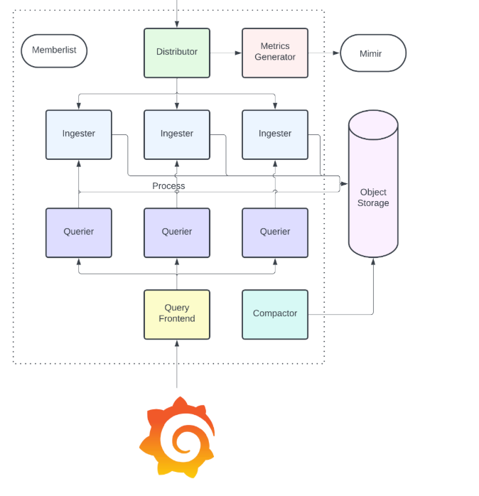 Monolithic mode: Monolithic mode uses a single Tempo binary that is executed, which runs all of the separate components within a single running process. This means that a single instance both ingests, stores, compacts, and queries trace data.